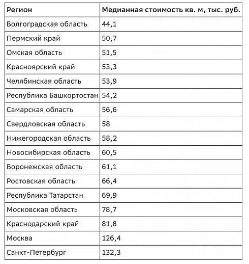 В топ-5 субъектов с наиболее низкими ценами также вошли Пермский край (50,7 тыс. руб.), Омская область (51,5 тыс. руб.), Красноярский край (53,3 тыс. руб.) и Челябинская область (53,9 тыс. руб).
