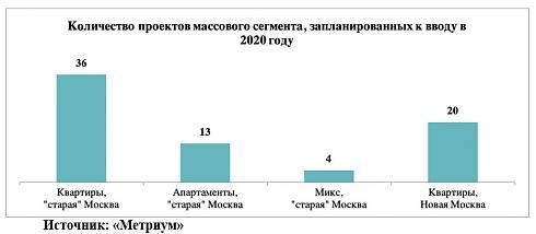 В комфорт- и эконом-классе «старой» и Новой Москвы на 2020 год запланирован частичный или полный ввод в эксплуатацию 73 проектов. 36 из них относится к жилым комплексам с квартирами, реализуемым на территории «старой» Москвы. Еще 20 адресов – это новомосковские новостройки. Апартаменты массового сегмента представлены 13 объектами, а в четырех проектах предлагаются и квартиры, и апартаменты.