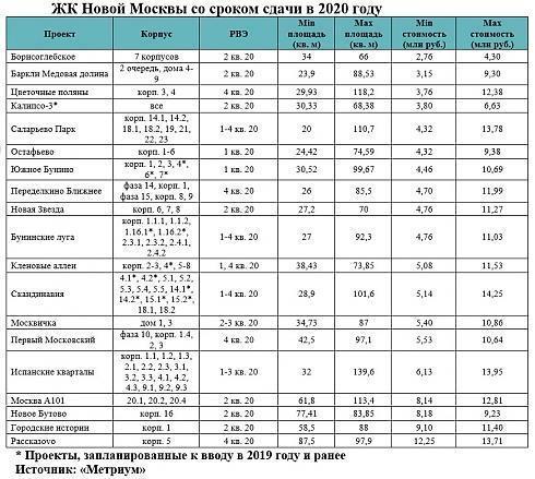 Самый доступный по цене проект в Новой Москве – из сдающихся в 2020 году – это жилой комплекс «Борисоглебское», где цены начинаются от 2,76 млн рублей. В ЖК «Баркли Медовая долина» минимальный ценник составляет 3,15 млн рублей. А в жилом комплексе «Цветочные поляны» предлагаются квартиры по цене от 3,76 млн рублей.