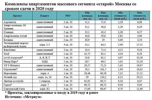 Комплексы апартаментов массового сегмента «старой» Москвы