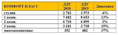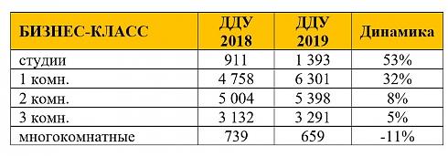 Рост продаж однокомнатных квартир связан с уменьшением покупательской способности населения. При меньших средствах и большей экономии покупатели склоняются в сторону квартир с меньшей площадью. В то же время рост объема продаж однокомнатных квартир по-разному распределен между классами жилья. Основным драйвером данного роста является бизнес-класс. В 2019 году рост объема продаж однокомнатных квартир в бизнес-классе был зафиксирован на уровне 32%, в то время как в комфорт-классе – только на 15%.