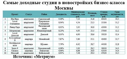Обсуждение Рейтинг самых доходных студий Москвы в новостройках бизнес-класса