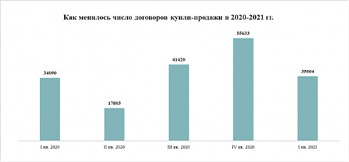 Скромный рост показал рынок вторичного и готового нового жилья. В I квартале в Москве было зарегистрировано 35 тыс. сделок купли-продажи, что на 3% больше, чем в I квартале 2020 года, когда Росреестр Москвы зафиксировал 34 тыс. таких соглашений. По этому показателю I квартал не стал рекордным. В 2014 году в Москве приобрели 38,5 тыс. квартир, а в тот же период 2019 года – 35,2 тыс. В марте в столице заключили 15,3 тыс. сделок, что на 27% больше, чем в феврале, и в два раза больше, чем в январе.