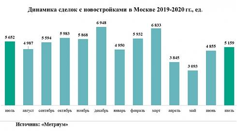 В июле 2020 года в Москве было заключено 5,2 тыс. договоров участия в долевом строительстве жилья (ДДУ). По сравнению с июнем 2020 года, когда Росреестр зарегистрировал 4,9 тыс. ДДУ, активность дольщиков увеличилась на 6%, подсчитали аналитики «Метриум». При этом относительно июля 2019 года количество ДДУ всё ещё меньше на 9%. Таким образом, полностью рынок новостроек пока не восстановился, но показатели сделок вплотную приблизились к значениям аналогичного периода прошлого года.