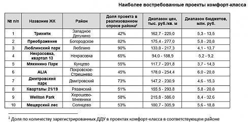 «Безусловно, покупатели жилья комфорт-класса в первую очередь обращают внимание на бюджет покупки. Помимо этого, важной составляющей является и местоположение проекта. Большинство из комплексов, представленных в рейтинге, отличаются хорошей транспортной и пешеходной доступностью – расположены буквально в нескольких минутах от станций метро или имею развитую сеть общественного транспорта, - комментирует Владимир Моребис, партнер, коммерческий директор компании Est-a-Tet. – Поэтому вполне логично, что районы, попавшие в тройку самых популярных у покупателей, отличаются развитой социальной и торгово-бытовой инфраструктурой».