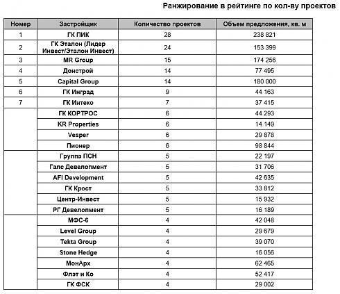 Несмотря на небольшую паузу в строительстве, Москва отличается разнообразием новых жилых комплексов в разных сегментах, расположенных как в центральном округе, так и в различных спальных районах, а многие из них в будущем украсят бывшие промзоны. У столицы есть свои лидеры, которые на сегодняшний день являются крупнейшими девелоперами города – по данным аналитиков департамента проектного консалтинга Est-a-Tet, в портфеле ГК ПИК находится более 238 тыс. кв. м жилья в 28 проектах. Девелопер MR Group строит 15 новостроек, объем которых превышает 174 тыс. кв. м. В пятерку лидеров по количеству проектов также вошли Донстрой и Capital Group.