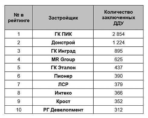 Наибольшее количество зарегистрированных ДДУ было также зафиксировано в проектах ГК ПИК – 2854 штук. В комплексах от Донстрой, было зарегистрировано 1224 ДДУ, от ГК Инград – 895 штук.