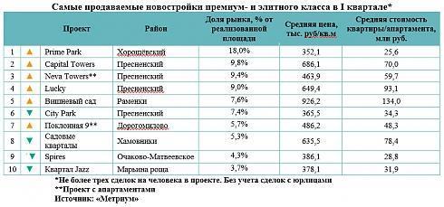 Обсуждение Самые продаваемые элитные и премиальные новостройки в I квартале