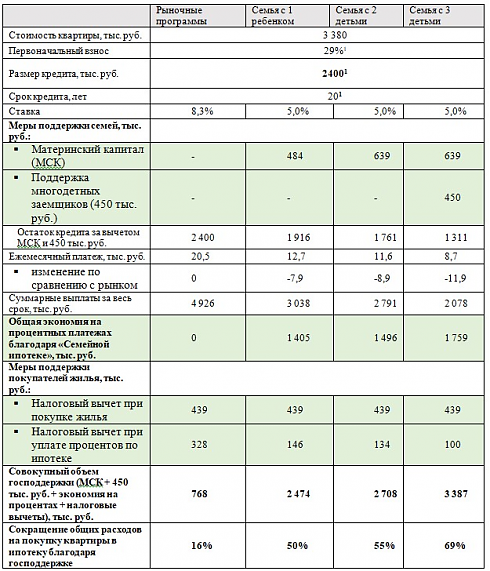 «Мы анализировали, как влияет применение этих мер при получении стандартного ипотечного кредита на сумму около 2,5 млн рублей. Если у вас есть ребенок, вы воспользовались маткапиталом и программой «Семейная ипотека», ваш платеж сократится на 40%, а общие расходы на покупку квартиры — на 50%. Если у вас два ребенка, и вы воспользовались всеми этими программами, экономия будет еще больше. А для семей, где три и более детей, сокращение расходов при среднем кредите по «Семейной ипотеке» может достигать 69%», — рассказал он.