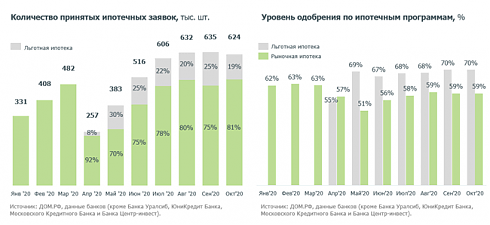 «Мы видим, что несмотря на беспрецедентные масштабы выдачи в летние и осенние месяцы, спрос на ипотеку еще далеко не исчерпан. Люди продолжают обращаться за ипотечными кредитами. Конечно, главная причина в исторически низких ипотечных ставках. За год ставки предложения по основным ипотечным продуктам снизились на 1,1–1,4 процентного пункта, в частности, на новостройки – до 8%. Такого в истории российского ипотечного рынка не было еще никогда. Как результат, в октябре в рыночном сегменте ипотеки зафиксировано 506 тыс. заявок – на 31 тыс. больше, чем в сентябре. Благоприятные условия кредитования позволяют гражданам не откладывать решение жилищного вопроса на будущее и уже сегодня вкладываться в покупку недвижимости», – говорит генеральный директор ДОМ.РФ Виталий Мутко.