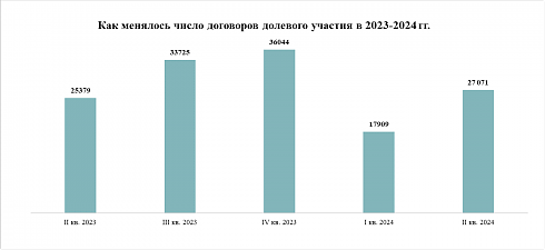 В июне 2024 года Росреестр Москвы зарегистрировал 10,5 тыс. договоров участия в долевом строительстве (ДДУ) жилья, что на 21% больше, чем в мае 2024 года. В то же время по сравнению с июнем 2023 года количество ДДУ в Москве увеличилось на 34% – год назад Росреестр зафиксировал только 7,8 тыс. ДДУ. В целом за второй квартал число заключенных сделок на рынке строящегося жилья Москвы составило 27 тыс., что на 7% больше, чем в тот же период 2023 года. За полугодие застройщики заключили почти 45 тыс. ДДУ. Это на 2% меньше, чем за первое полугодие 2023 года.