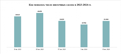 Иную динамику продемонстрировал спрос на ипотеку. В июне 2024 года Росреестр Москвы зафиксировал 9,8 тыс. соглашений между заемщиками и банками, что на 6% меньше, чем в мае. Между тем в июне 2023 года было зарегистрировано 13,1 тысяч ипотечных сделок, то есть в годовом измерении спрос заемщиков сократился на 25%. В целом за второй квартал на рынке ипотеки зафиксирована 31 тыс. сделок (–15% ко второму кварталу 2023 года), а за полугодие – 57,8 тыс. соглашений, что на 11% меньше, чем за первое полугодие 2023 года.