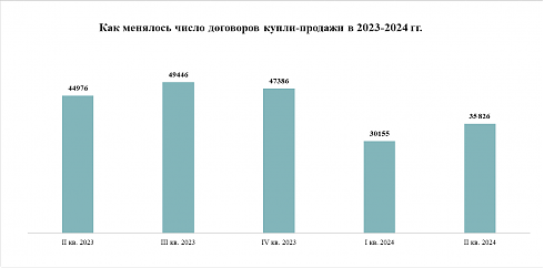 На рынке готового жилья (вторичные квартиры, а также готовые новостройки) в Москве активность покупателей в июне 2024 года также заметно сократилась. Росреестр зарегистрировал 11,4 тыс. договоров купли-продажи, что на немного меньше, чем в мае, но заметно меньше, чем в июне 2023 года. Тогда было зафиксировано 15,8 тыс. сделок, то есть в годовом измерении активность клиентов во вторичном сегменте упала на 28%. За второй квартал Росреестр зарегистрировал всего 35,8 тыс. сделок купли-продажи (на 20% меньше, чем в тот же период 2023 года), а во втором полугодии – почти 66 тыс. соглашений – это на 16% меньше, чем в первом полугодии 2023 года.