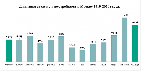 В октябре 2020 года в Москве было заключено 9,9 тыс. договоров участия в долевом строительстве (ДДУ). По сравнению с тем же месяцем 2019 года, когда Росреестр зафиксировал 5,9 тыс. ДДУ, активность покупателей строящегося жилья увеличилась на 65%. Однако в сравнении с предыдущим месяцем (сентябрь 2020, когда было зарегистрировано 11,9 тыс. ДДУ), спрос снизился на 17%, подсчитали аналитики «Метриум». Впрочем, за исключением сентября, октябрь остается самым успешным для московских застройщиков месяцем 2020 года.