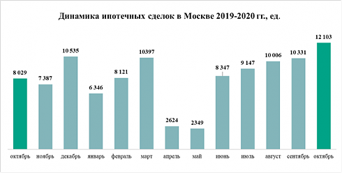 На рынке ипотеки заемщики в октябре поставили новый рекорд. Росреестр зафиксировал 12 тыс. ипотечных займов, что на 51% больше, чем в октябре 2019 года. В сравнении с сентябрем показатель увеличился на 17%. Эксперты «Метриум» отмечают, что в октябре 2020 года был поставлен абсолютный рекорд за всю историю рынка. Предыдущий максимум был зафиксирован в декабре 2019 года, когда Росреестр зарегистрировал 10,5 тыс. ипотечных сделок.
