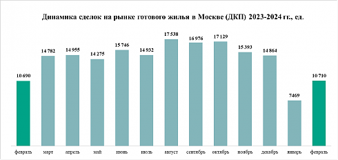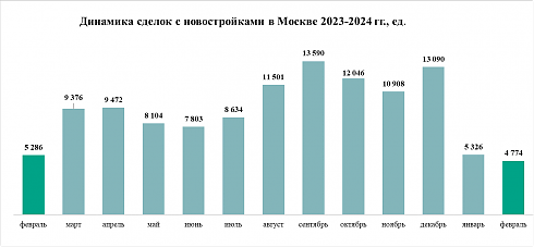 В феврале 2024 года Росреестр Москвы зарегистрировал 4,8 тыс. договоров участия в долевом строительстве жилья (ДДУ), что на 10% меньше, чем в январе 2024 года, хотя обычно спрос в феврале возрастает. В то же время относительно февраля 2023 года спрос на рынке долевого строительства также оказался ниже на 10%. Итоги февраля 2024 года худшие для московского рынка долевого строительства с 2017 года, когда было заключено 3,3 тыс. ДДУ.