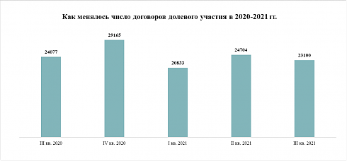 В III квартале 2021 Росреестр Москвы зарегистрировал 23,1 тыс. договоров участия в долевом строительстве, что на 4% меньше, чем в III квартале 2020 года (24,1 тыс.), подсчитали аналитики «Метриум». Больше всего сделок за последние три месяца было зафиксировано в сентябре, когда дольщики заключили в Москве почти 10 тыс. ДДУ, что на 56% больше, чем в августе (6,4 тыс.), но на 16% меньше, чем в сентябре 2020 года.