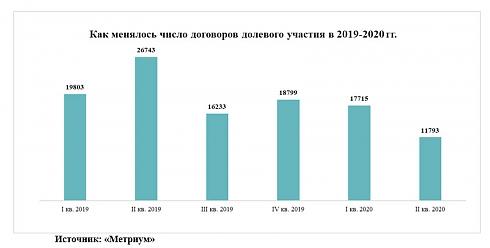 В целом по итогам II квартала спрос на новостройки в Москве уменьшился на 56%, по сравнению со II кварталом 2019 года, когда было заключено почти 27 тыс. ДДУ. За I полугодие активность покупателей снизилась на 37%.