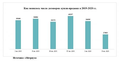 На вторичном рынке жилья в июне 2020 года ситуация также улучшилась. В этот период в Москве заключили 8,7 тыс. договоров купли-продажи жилья, что в 2,2 раза больше, чем в мае 2020 года. В годовом выражении число сделок в июне 2020 года сократилось всё же на 21%. За II квартал спрос на вторичное жилье в Москве упал на 52%, а за полугодие – на 28% относительно аналогичных периодов предыдущего года.