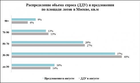 В свою очередь, средняя площадь проданных квартир в столице по договорам долевого участия (ДДУ) в январе-августе 2024 года составляет 49,7 кв. м, апартаментов – 40,9 кв. м. Это свидетельствует о том, что максимальным спросом в большинстве сегментов с начала 2024 пользовались компактные форматы. Тем не менее, в июле-августе ситуация изменилась, спрос на малогабаритные квартиры существенно упал, так как ведущие девелоперы не распространили на них дисконт. Кроме того, небольшие варианты почти неактуальны в рамках семейной ипотеки, которая сейчас осталась единственной действующей госпрограммой в Москве.