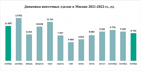 На рынке ипотеки тем временем спрос снова скорректировался. В ноябре банки выдали заемщикам 8,8 тыс. кредитов на покупку нового и вторичного жилья, что на 6% меньше, чем в октябре 2022 (9,3 тыс. сделок). Относительно ноября 2021 года количество сделок, зарегистрированных Росреестром Москвы в ноябре 2022 года, уменьшилось на 21%.