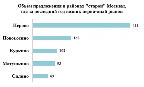 По данным компании «Метриум» и ГК «Основа», продажи на первичном рынке «старой» Москвы сегодня ведутся в 97 районах. Год назад девелоперы реализовывали проекты в 95 районах. За прошедшие 12 месяцев предложение первичного жилья было полностью исчерпано и не было восполнено в трех районах: Лианозово (СВАО), Вешняки (ВАО), Старое Крюково (ЗелАО).