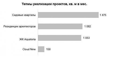 «В период с января 2019 года по февраль 2020 года лишь в четырех из перечисленных проектов были заключены ДДУ . В ЖК «Садовые кварталы» ежемесячные темпы реализации достигают 1,4 тыс. кв. м. Высокие показатели зафиксированы и в проектах «Резиденции архитекторов» и Aquatoria – более 1 тыс. кв. м в месяц. Четвертым проектом стал Cloud Nine, в котором за указанный период реализовалось 158 тыс. кв. м», - комментирует Владимир Моребис, партнер, коммерческий директор компании Est-a-Tet.