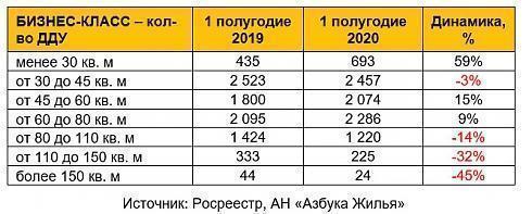 «Однако нельзя говорить, что спрос перешел из массового сегмента в бизнес-класс. В классах комфорт и эконом недосчитались почти 5 000 розничных продаж по сравнению с первой половиной 2019 года, что никак не покрывается увеличением на 300 проданных лотов в бизнес-классе. Это лишь говорит о том, что покупательская способность квартир бизнес-класса выше. Потребители данного сегмента более обеспеченные, и, соответственно, продажи в бизнес-классе стабильные. Но текущая ситуация сказывается и на бизнес-классе. В частности, заметно увеличение спроса на малогабаритные квартиры площадью до 30 кв. м», - отмечает Дмитрий Косьмин, генеральный директор агентства недвижимости «Азбука Жилья».