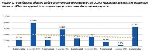 По подсчетам специалистов аналитической платформы bnMAP.pro, в 3 квартале 2020 года запланирован максимальный ввод в эксплуатацию новостроек элитного и премиум-класса в ЦАО г. Москвы — почти 87 тыс. квадратных метров. Однако текущая ситуация с коронавирусом ставит под угрозу выполнение этих показателей.