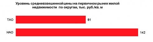 Средняя цена на рынке новостроек в ТАО выросла с 76 тыс. руб./кв. м до 81 тыс. руб./кв. м, а в НАО показатель увеличился со 134 тыс. руб./кв. м до 142 тыс. руб./кв. м.