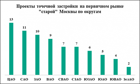 Проекты точечной застройки на первичном рынке «старой» Москвы