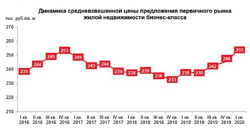 Аналитики департамента проектного консалтинга Est-a-Tet подвели итоги I квартала на рынке новостроек бизнес-класса и выяснили, как изменились цены в данном сегменте, а также проанализировали динамику спроса в них. По данным специалистов, средняя стоимость предложения выросла почти на 4% и сейчас составляет 255 тыс. руб./кв. м, за год прирост составил 7,2%.