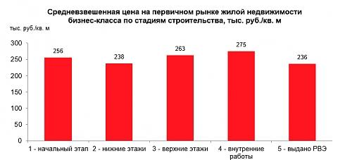 Самая высокая стоимость квартир зафиксирована в новостройках на стадии внутренних работ – 275 тыс. руб./кв. м. Значительно ниже показатель в домах, уже введенных в эксплуатацию, он составляет 236 тыс. руб./кв. м.