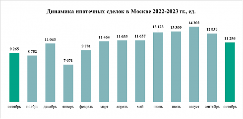 Количество ипотечных сделок в октябре в Москве продолжало сокращаться. Заемщики получили на покупку первичного и вторичного жилья 11,3 тыс. кредитов, что на 13% меньше, чем в сентябре, но на 21% больше, чем в октябре 2022 года, когда было зарегистрировано 9,3 тыс. ипотечных сделок. Выдача ипотеки сокращается уже три месяца подряд с августа, когда Центробанк повысил ключевую ставку и были пересмотрены условия предоставления льготной ипотеки.