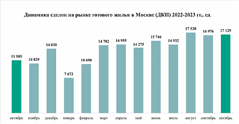 На рынке готового жилья (квартиры от частных владельцев и готовые новостройки от девелоперов) в октябре число сделок увеличилось. Росреестр зарегистрировал 17,1 тысяч договоров купли-продажи (ДКП), что на 1% больше, чем в сентябре, и всего на 2% меньше, чем в августе, когда был зафиксирован рекорд 2023 года (17,5 тыс. сделок). Относительно октября 2022 года активность покупателей выросла на 49%.