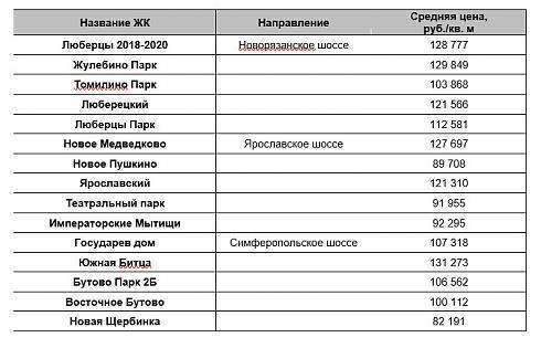 У покупателей, выбирающих проекты по Новорязанскому направлению, самыми востребованными стали комплексы «Люберцы 2018-2020», «Жулебино Парк», «Томилино Парк», «Люберецкий» «Люберцы Парк», при этом самая низкая цена отмечена в «Люберцы парк» - 112,5 тыс. руб./кв. м.