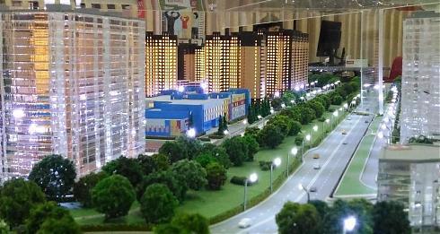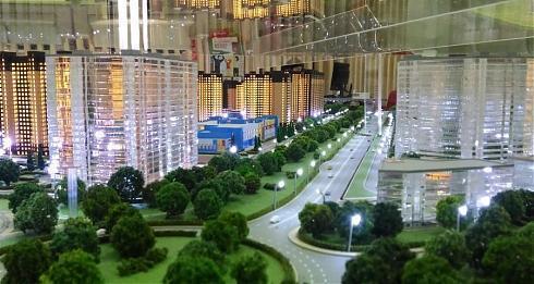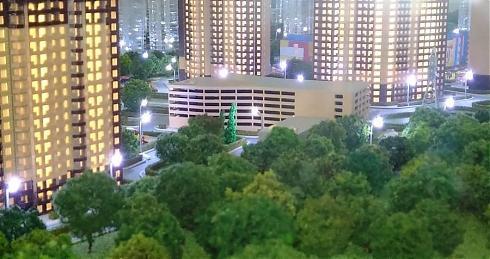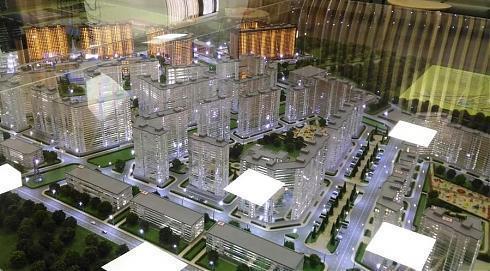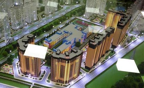 Нужно учитывать, что это только краешек большого жилого комплекса, который строится на 77 гектарах земли по принципу «город в городе», то есть, когда к 2024 году все корпуса будут построены, это будет практически небольшой город со своей инфраструктурой, своими учебными заведениями и поликлиниками, магазинами, торговыми и развлекательными центрами. Обратите внимание, что на генплане жилого комплекса корпуса с 26 по 31 вместе со школой и детским садом находятся в самом низу изображения. Корпуса, которые пока только в проекте, на макете сделаны прозрачными, как будто ледяные фигуры окружают кирпичные стены строящихся корпусов.