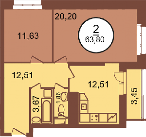 Некоторые из двухкомнатных спланированы с окнами на две стороны корпуса. Во всех двухкомнатных два санузла, лоджия, большая кухня.