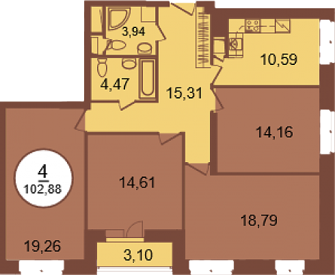 Всего здесь будет, как уже было сказано, более тысячи квартир разных размеров. Во втором и четвёртом корпусах одно-, двух- и трехкомнатные, в первом и третьем – кроме того студии и четырёхкомнатные квартиры. Но в целом студий (37 штук) и четырехкомнатных (29 штук) совсем мало, да и трехкомнатных – всего 81 квартира. В основном тут будут двухкомнатные – 534 шт.- и однокомнатные квартиры, их построят 355 штук.