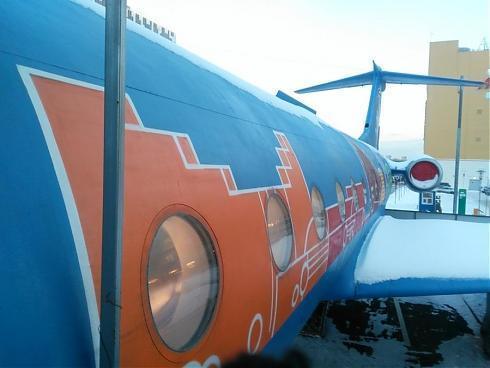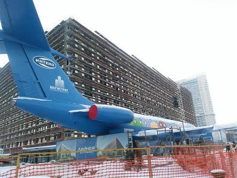 Офис продаж, который находится в самом настоящем самолете ТУ-134, расположен рядом с западным корпусом апарт-комплекса.