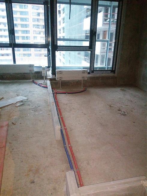 Из отделки: неплохая металлическая дверь, разводка сантехники до санузла, разводка электрики до щитка, батареи (современные, но, на мой взгляд, расположенные довольно неудобно, у панорамных окон), над кухонной зоной подведена вытяжка.
