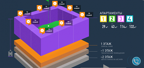 Здесь можно найти проектные декларации, планировки, поэтажные планы, фотографии со строительной площадки. Кстати, в проектной декларации объект обозначен как «гостинично-офисный комплекс с апартаментами и автостоянкой».