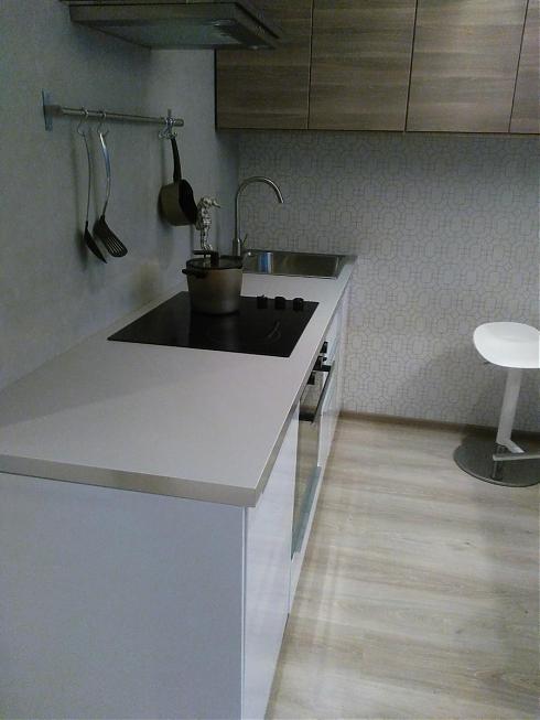Вариант отделки только один, выбирать цвета и фактуры покупатели, увы, не могут. Отделку можно посмотреть в шоу-руме, который расположен прямо рядом с офисом продаж. Приблизительный порядок цен таков: стоимость «студии» за счет отделки увеличится примерно на 1.6 млн руб. В принципе, не очень дешево, но стоит учитывать, что сантехника, кухонный гарнитур, вытяжка, плита и душевая кабина входят в эту стоимость.