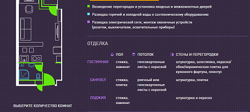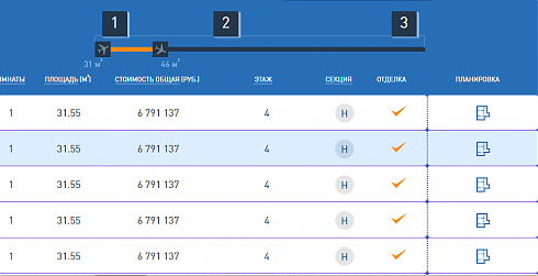 Подбор квартир на сайте организован довольно удобно: можно выбрать квартиру по площади, цене, расположению на поэтажном плане, и тут же посмотреть планировку.