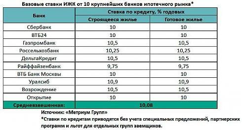 На начало октября средний размер базовой ставки по ипотечным кредитам у десяти крупнейших банков, на долю которых приходится 92% всех выданных кредитов, составил 10,24%. При этом, отмечают эксперты «Метриум Групп», в предложениях всех кредиторов базовая ставка (без учета акций и спецпрограмм для отдельных групп заемщиков) по ипотечным кредитам полностью сравнялась на покупку новостроек и готового жилья.