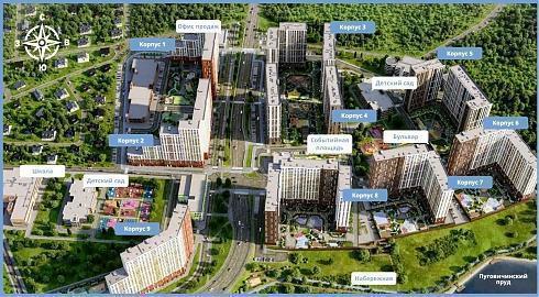 Жилой комплекс, состоящий из девяти корпусов переменной этажности класса комфорт-плюс, строят на земельном участке площадью 26 гектаров. Технология строительства панельная, класс энергоэффективности зданий В и В+ (высокий).