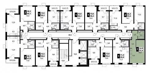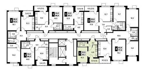 В зданиях от 3 до6секций,на одном этаже в секции от 7до 11 квартир. В секциях установят по 2 или 3 лифта грузоподъемностью 1000, 630 или 400 килограммов. Лифты смогут опускаться на минус первый этаж. В подземном этаже обустроят кладовые площадью от 2,7 до 6,1 кв.м.