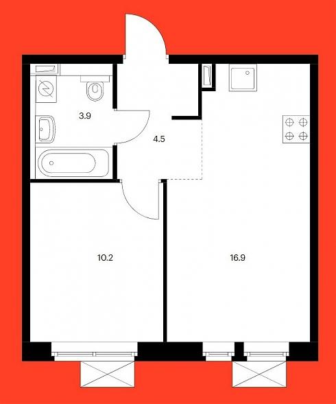 Планировка однокомнатной квартиры 39,9