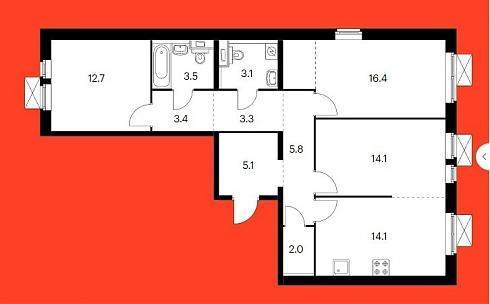 Планировка четырехкомнатной квартиры 93,2