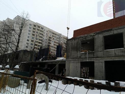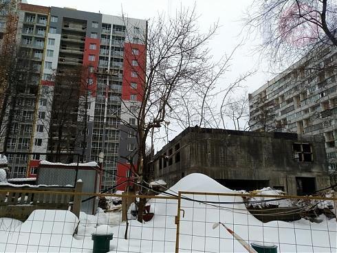 Сбоку можно заметить и монолитный каркас будущего детского досугового центра.